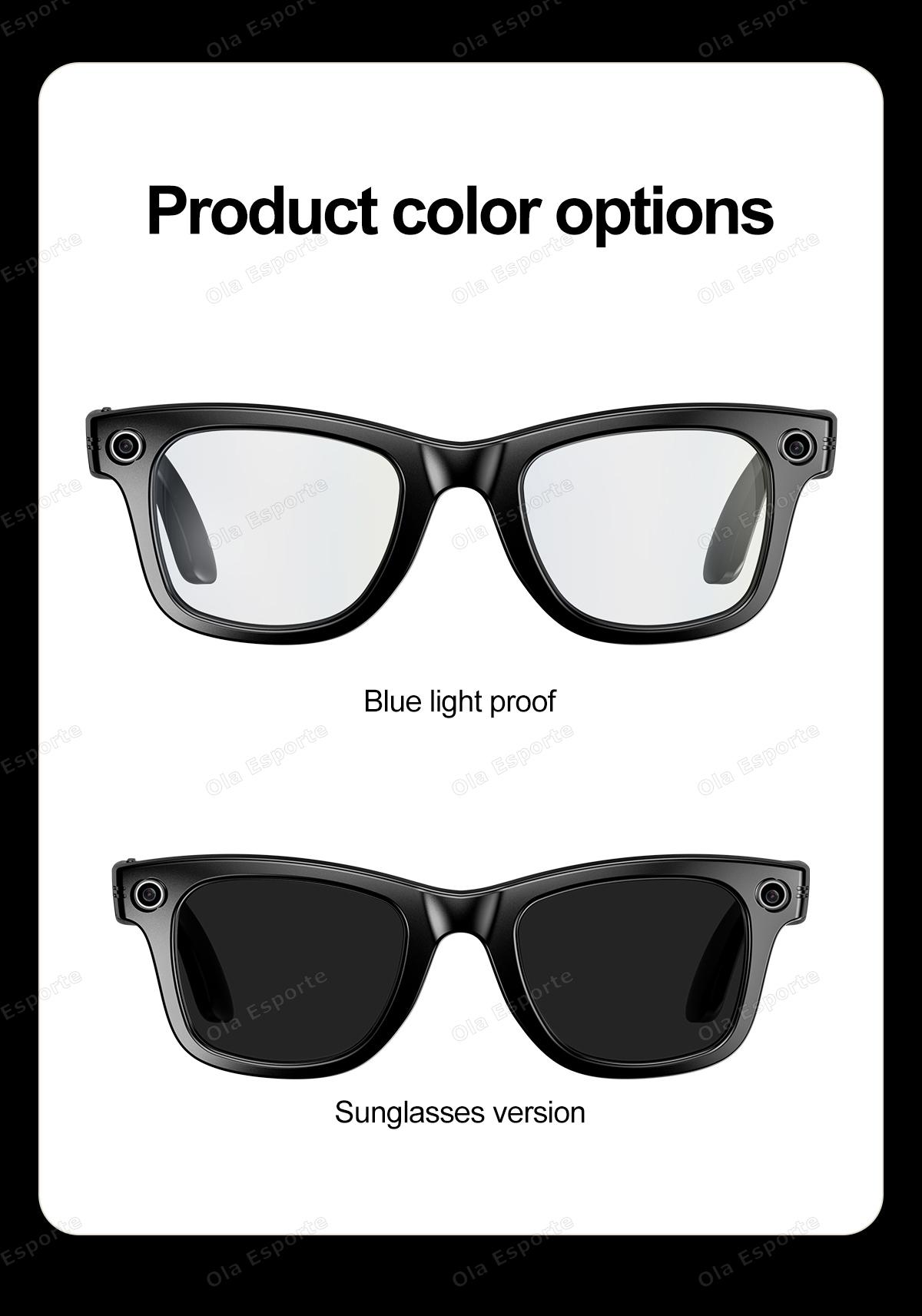AI photo-taking and video recording fashionable smart glasses: A1 photo recognition, answering questions, taking photos, recording videos, AI dialogue interaction, Bluetooth calls, local music playback (switching, pausing music), low power consumption W20 main control chip, long-lasting battery life, dual physical buttons and dual touch buttons for convenient operation, 35g lightweight overall weight for comfortable wearing, customizable sunglasses, blue light protection, myopia, and other lenses, 260mAh large battery, IP65 dust and water resistance, ultra-low power consumption (supports continuous recording for over 2 hours without heating). Integrated with ChatGPT's advanced model, high accuracy in image recognition.