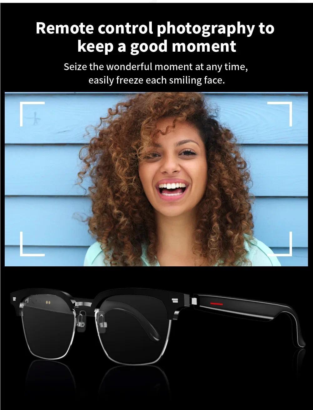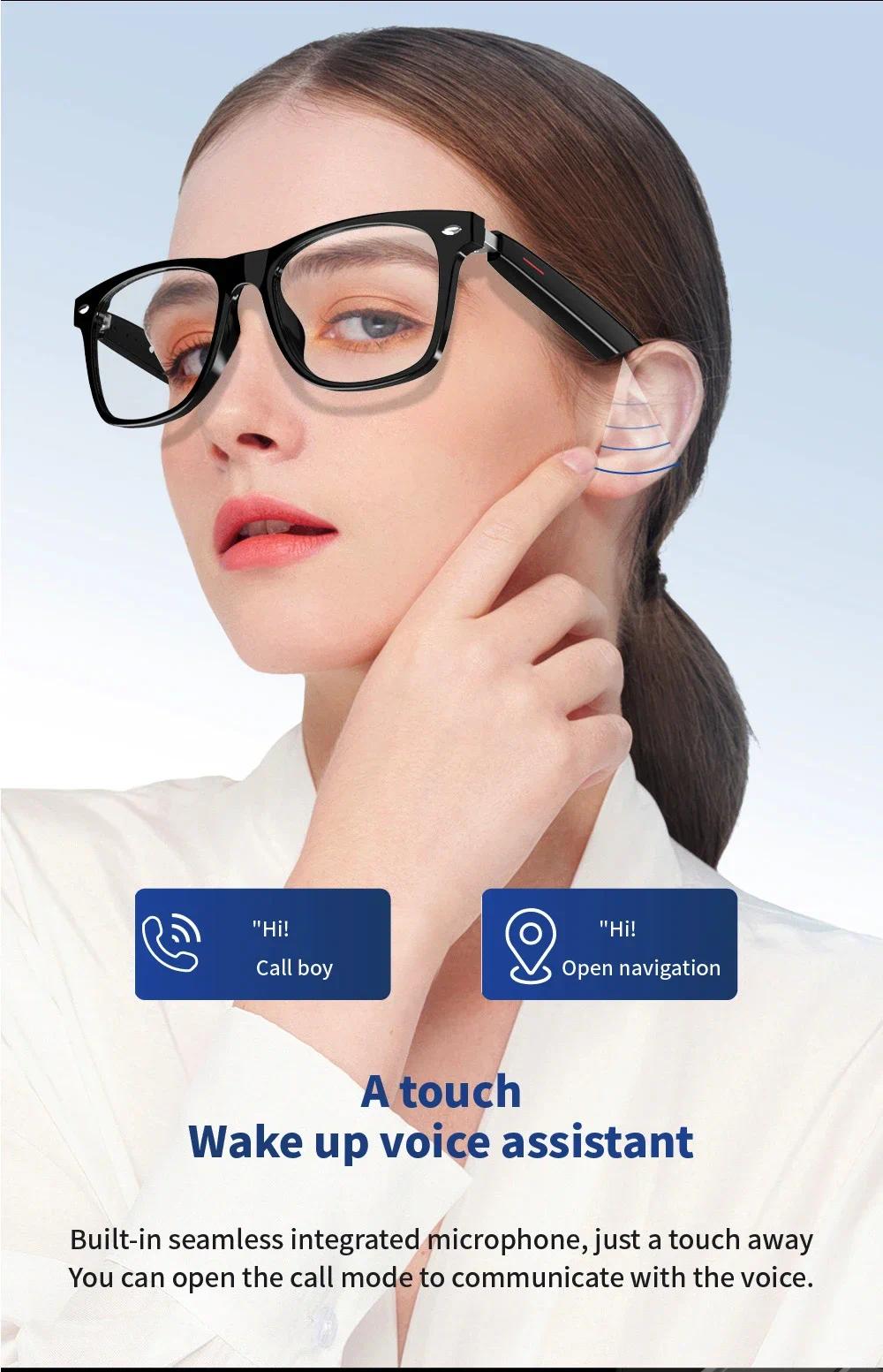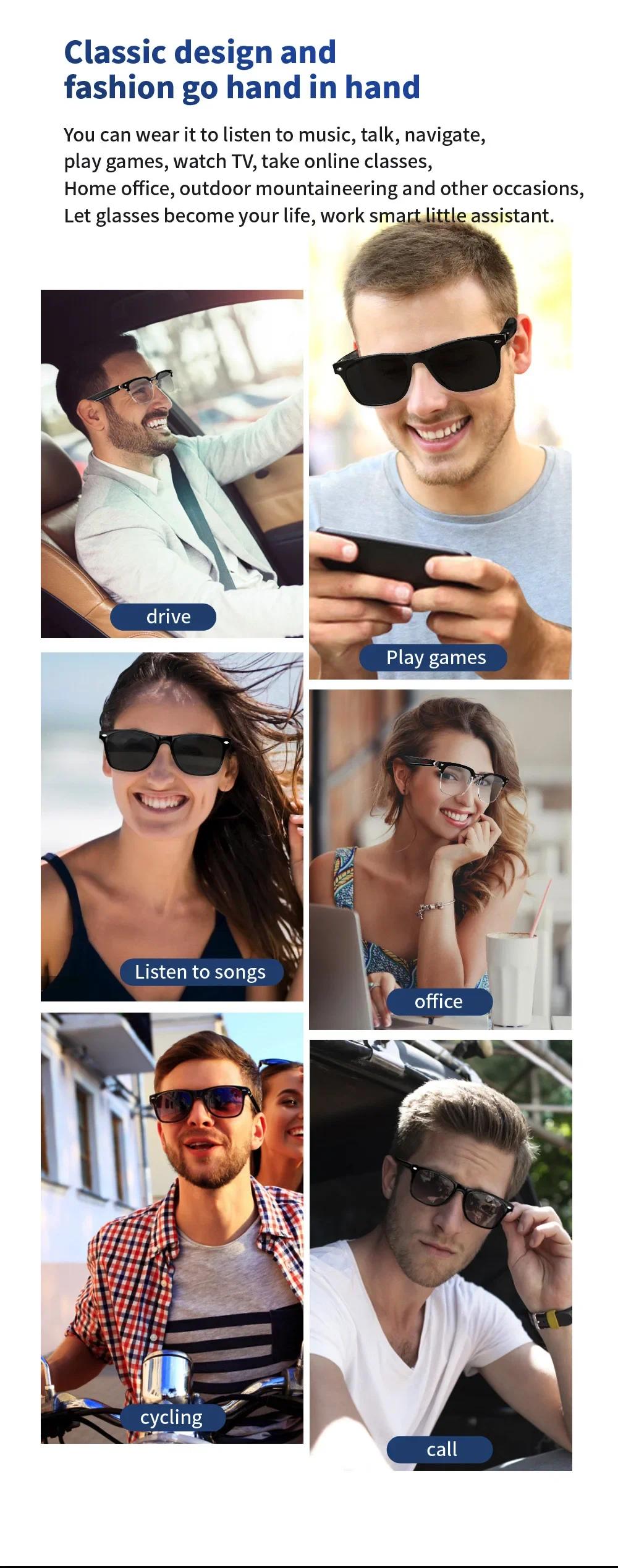 --Bluetooth-compatible glasses speaker: dynamic drive, unique sound cavity design, avoid hearing impairment --In-ear design helps you keep an eye on your surroundings, avoid danger and enjoy music --Open solution: allows you not only to listening to music, answer calls, but also to hear notifications from glasses, while listening to the world around you --The sunglasses have built-in noise-canceling microphones that allow you to make and receive calls --Transmission distance: 33 feet (10 meters) Description: Product : Smart Glasses Lens: anti-blue light lens; Lens material: acrylic; Frame material: ABS+PC; Speaker type: dynamic speaker; Microphone: -40dB±3dB; Compatible profiles: A2DP, AVRCP, HSP, HFP; Transmission distance: 33 feet (10 meters); Battery: Rechargeable Li-ion 75mAh; Continuous playback: 3-6 hours (normal volume); Standby time: 10 days; Charging time: 2 hours; Waterproof grade: IP7; Bluetooth-compatible version: CSR5.0; Working temperature: -10°C-+50°C Humidity 0-90%; Packing list: 1 x Bluetooth-compatible glasses 1 x USB cable 1 x glasses cloth 1 x instruction manual 1 x packing box Note: 1. Due to manual measurement, please allow 1-3cm error. Make sure you don't mind before bidding. 2. Due to the difference of different monitors, the picture may not reflect the actual color of the product. Thanks.