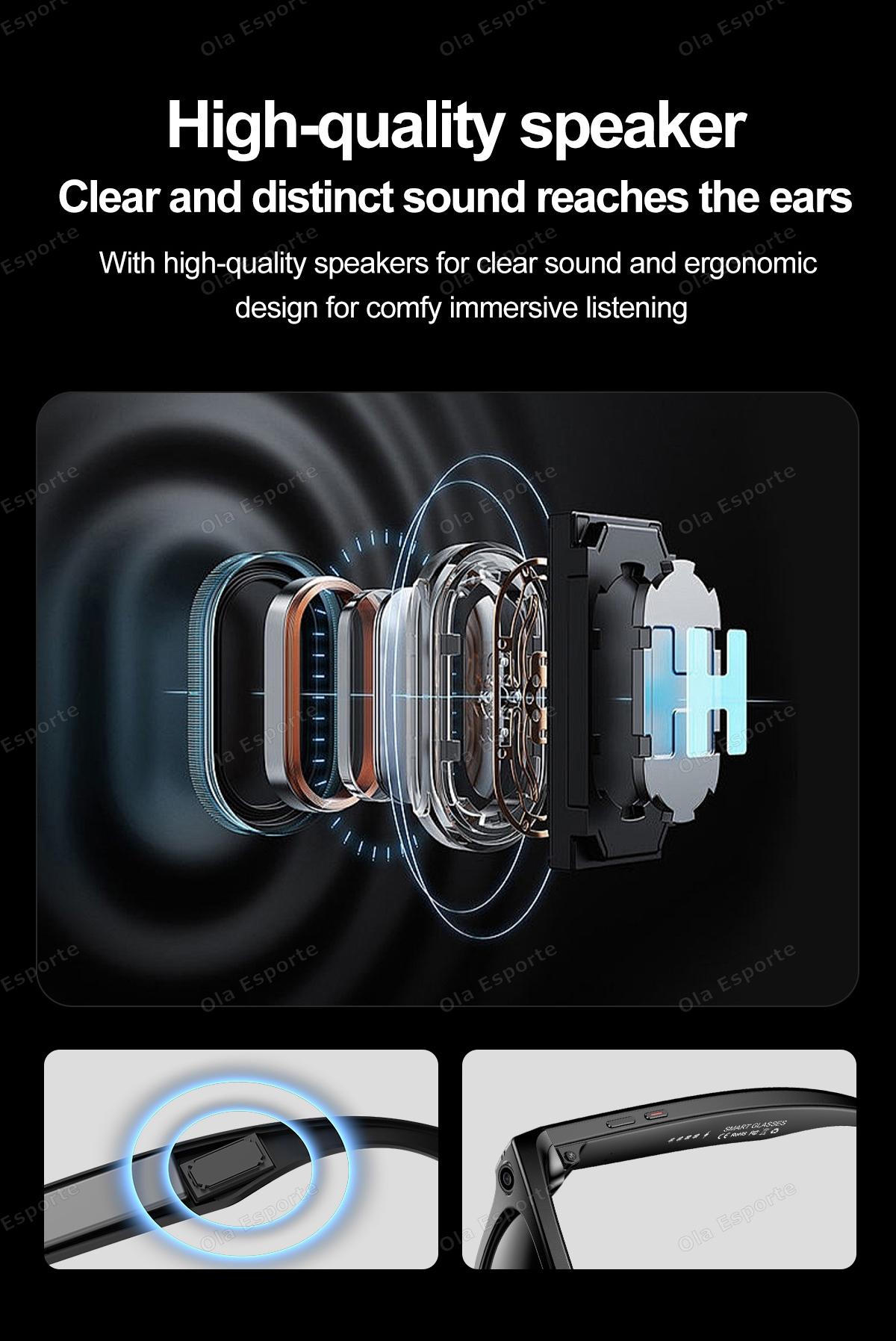 AI photo-taking and video recording fashionable smart glasses: A1 photo recognition, answering questions, taking photos, recording videos, AI dialogue interaction, Bluetooth calls, local music playback (switching, pausing music), low power consumption W20 main control chip, long-lasting battery life, dual physical buttons and dual touch buttons for convenient operation, 35g lightweight overall weight for comfortable wearing, customizable sunglasses, blue light protection, myopia, and other lenses, 260mAh large battery, IP65 dust and water resistance, ultra-low power consumption (supports continuous recording for over 2 hours without heating). Integrated with ChatGPT's advanced model, high accuracy in image recognition.
