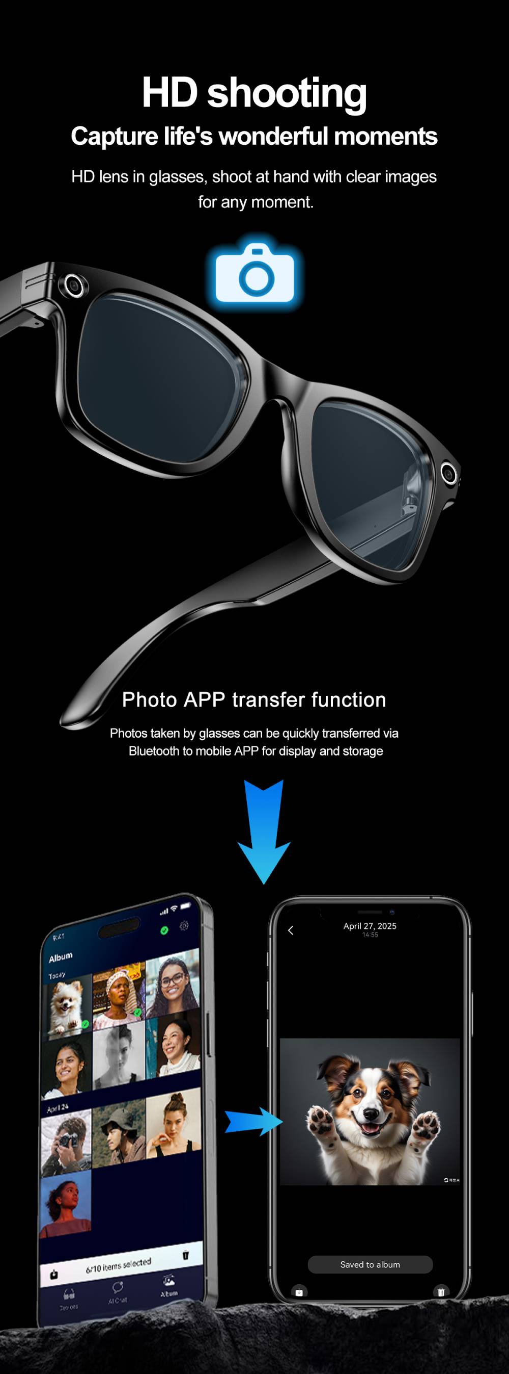 AI photo-taking and object recognition Q&A, Bluetooth calls, photography, video, recording, local music, AI dialogue intelligent interaction, AI intelligent translation, and advanced models for accessing ChatGPT