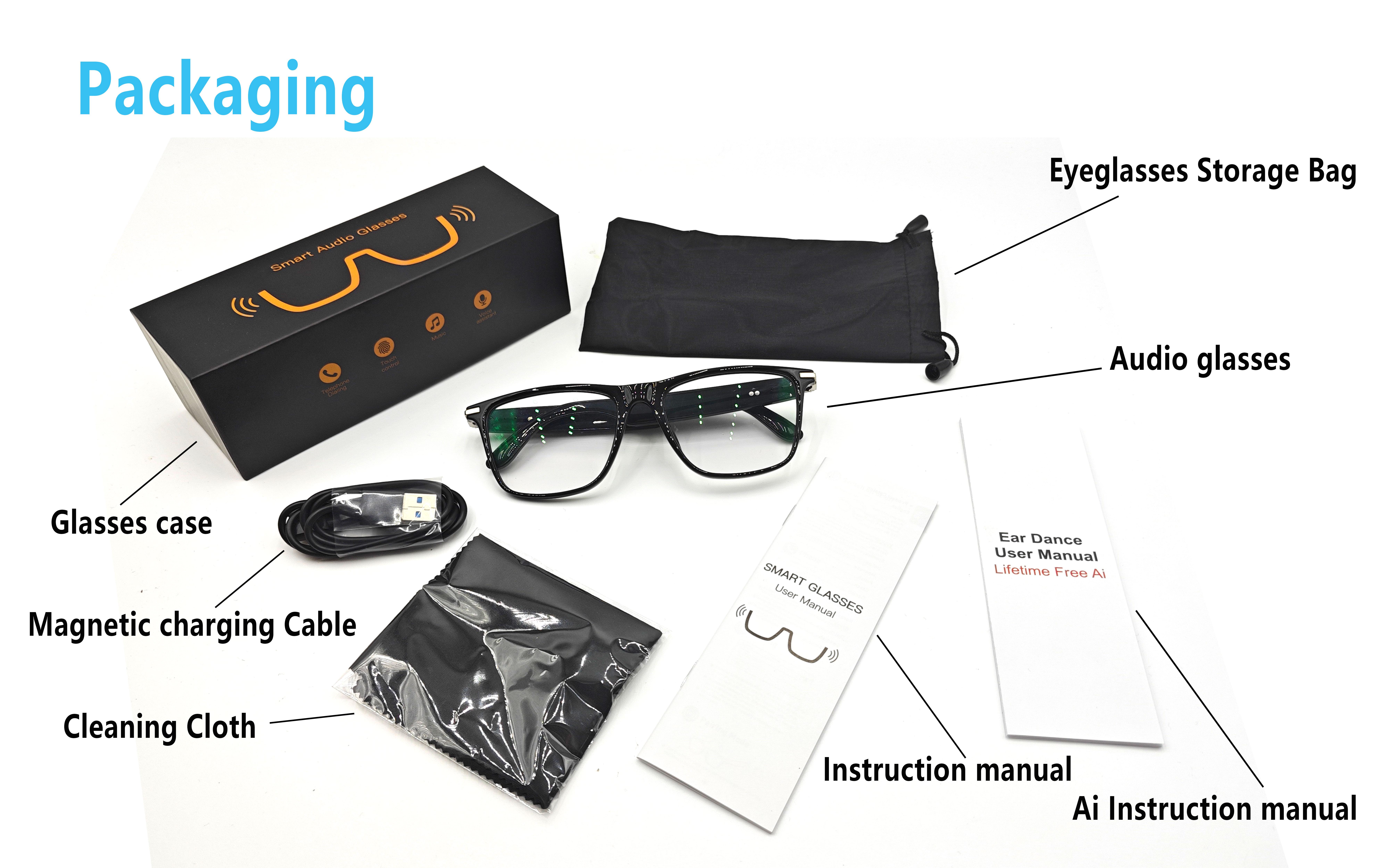 Smart AI translation glasses, real-time app translation in 164 languages, photochromic lenses, flat gray-black lenses.