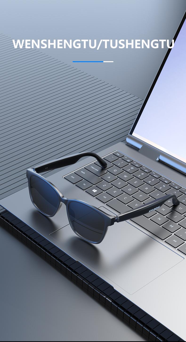 AI Smart Glasses Intelligent Real Time Language Translator Wireless Headphone AI Chat Smart Sunglasses Black