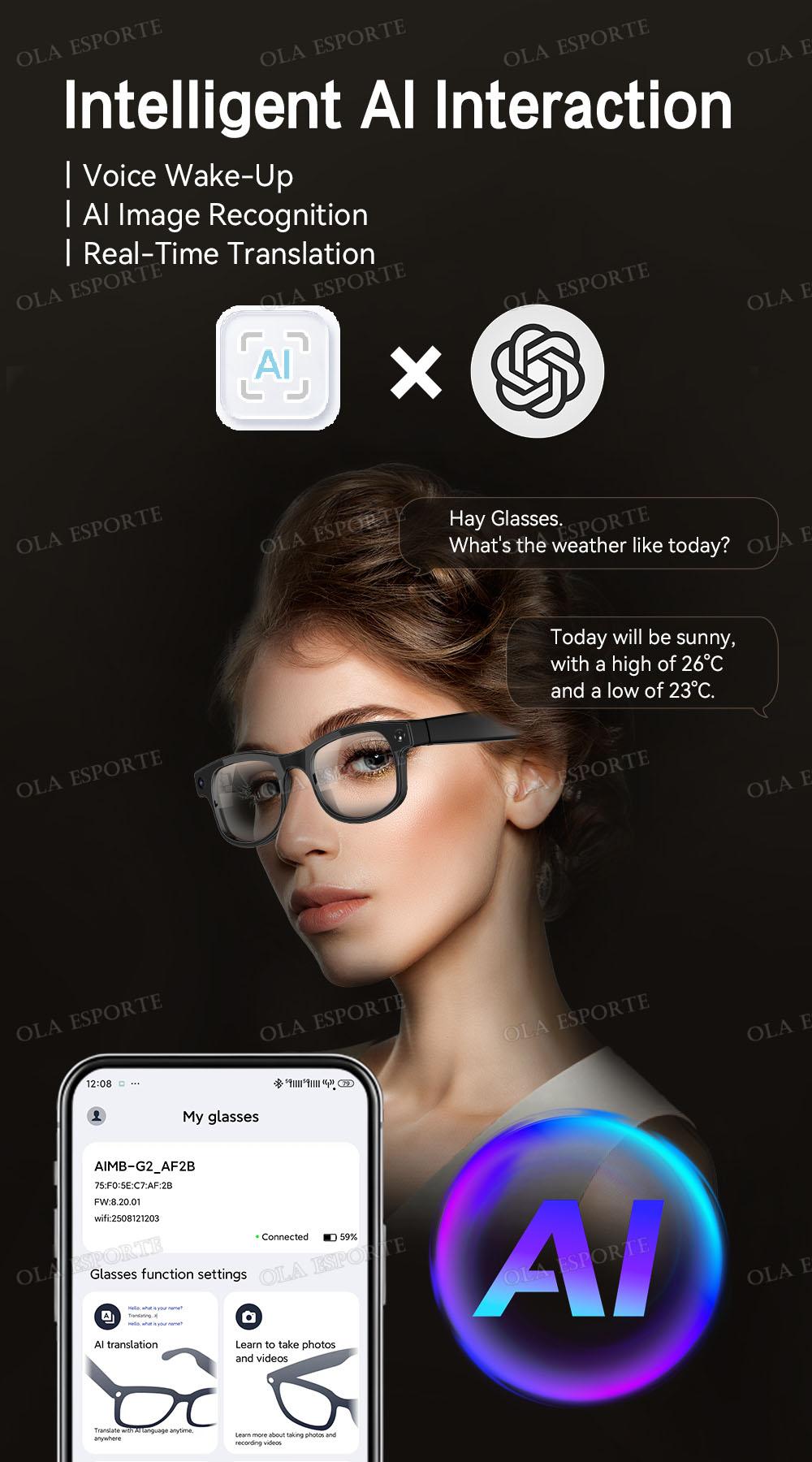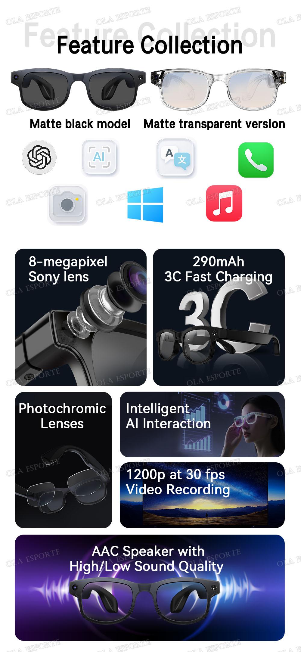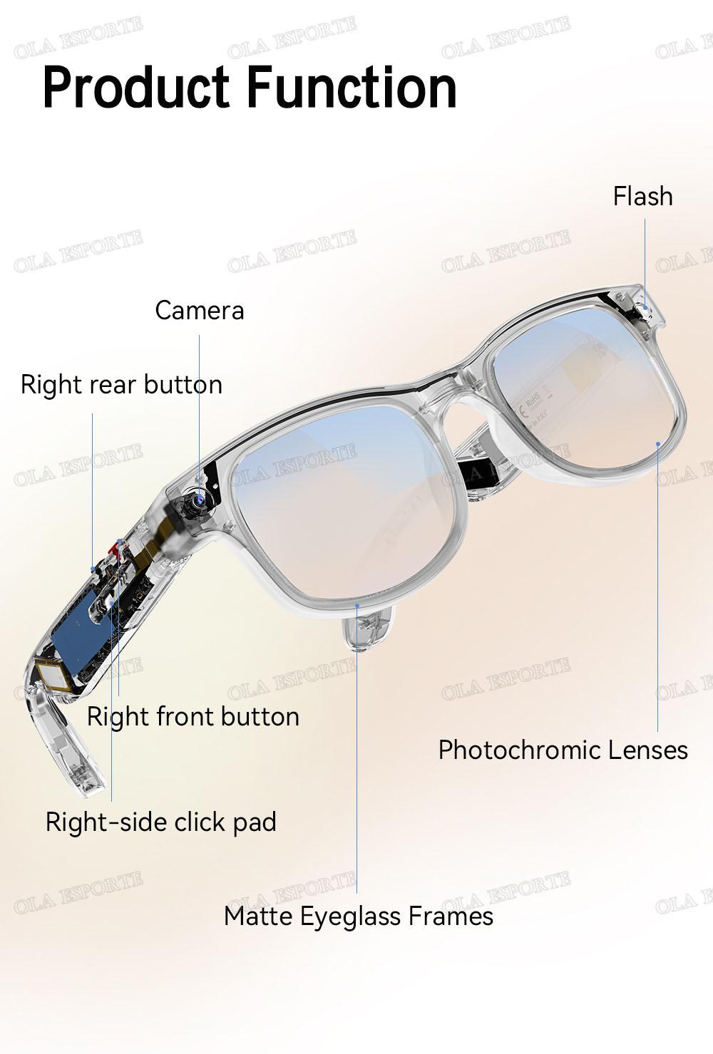 Right rear button: Power on Bluetooth connection status: Short press once to wake up the AI voice assistant; AI quickly recognizes images, double-click the button; Recording, long press the button to start; During recording, short press the button to end