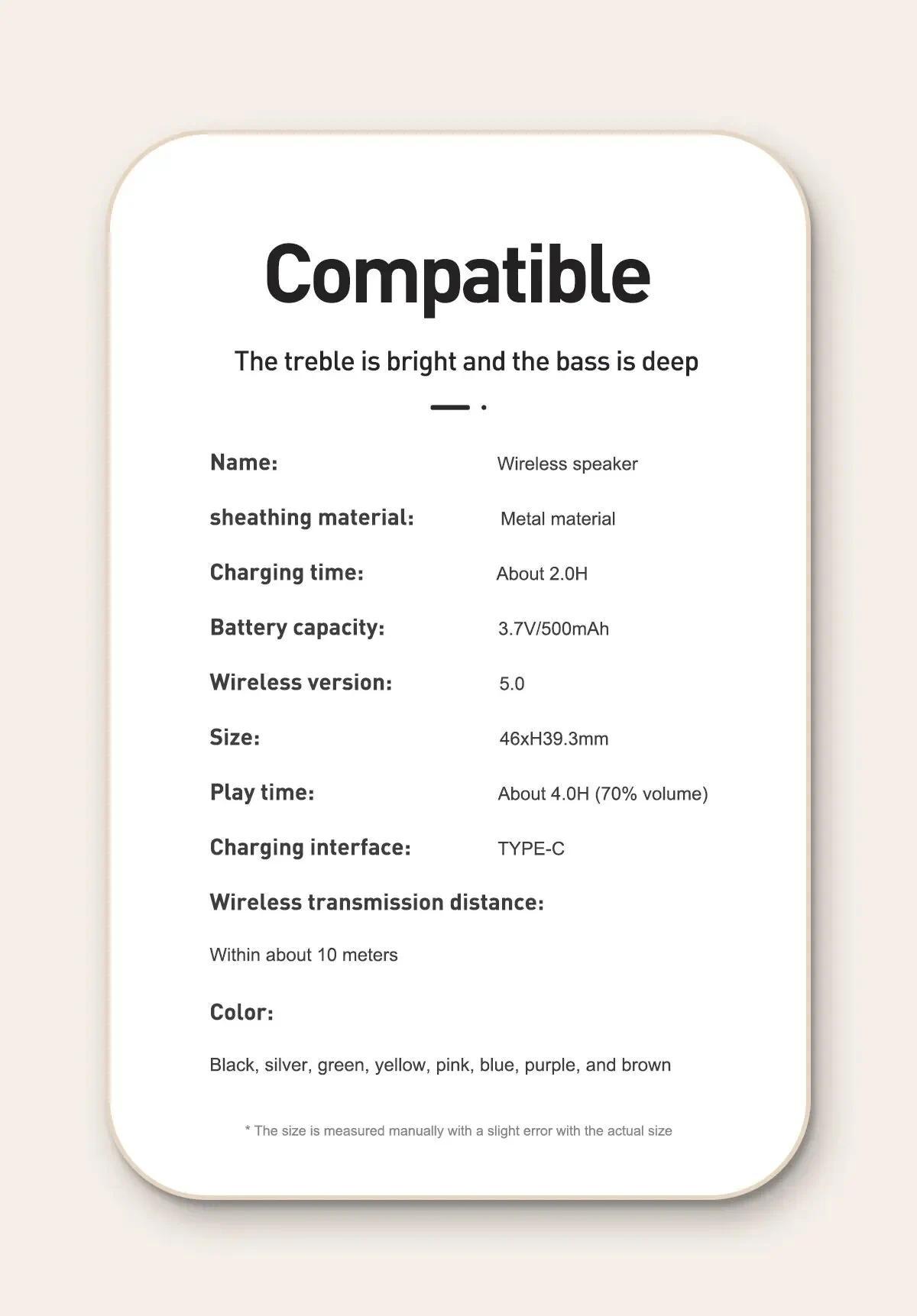 The treble is bright, the bass is rich, and the speaker is equipped with a large sound cavity.