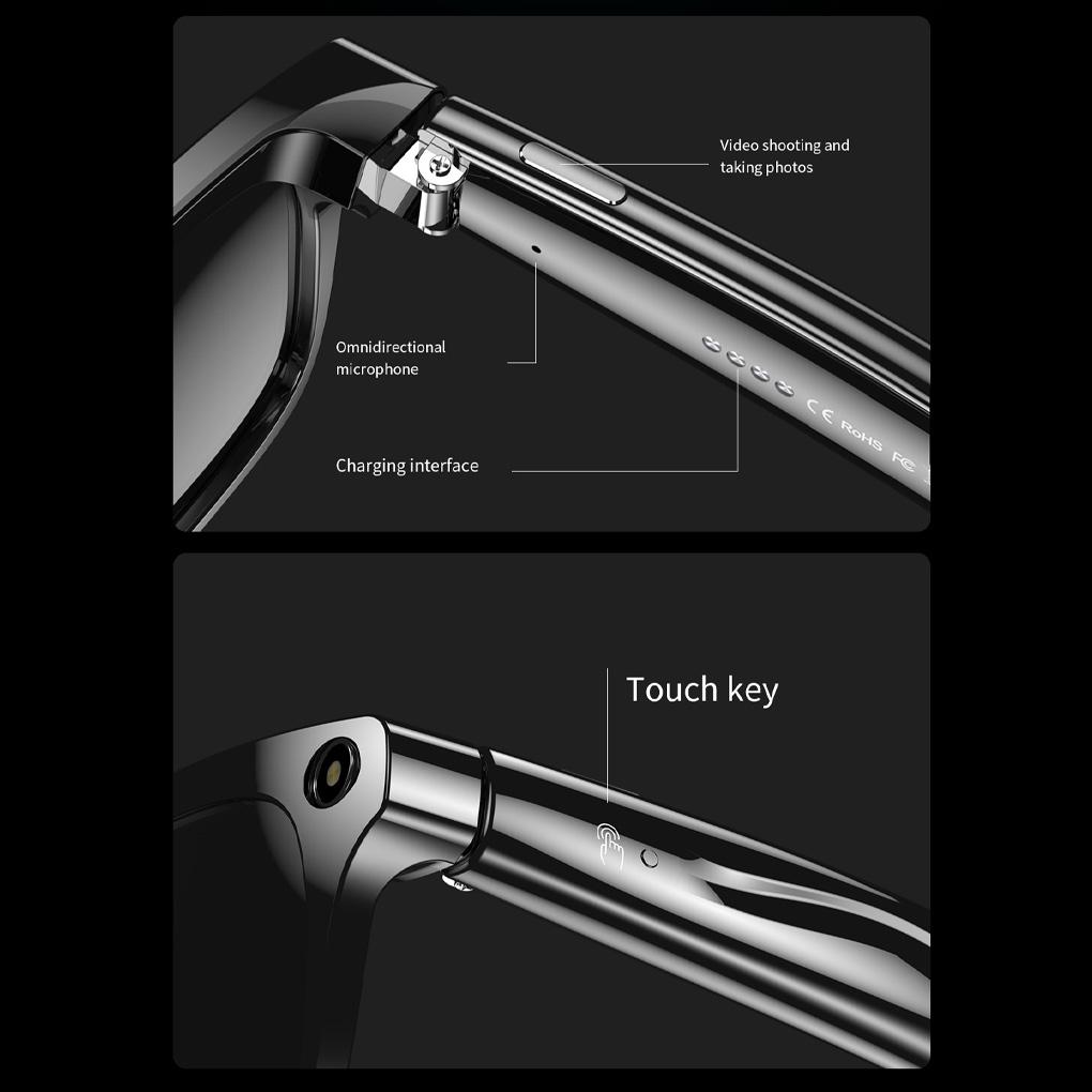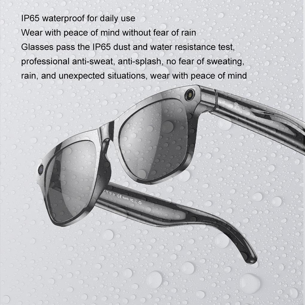 Description: AI Smart Glasses: Answer or reject calls, switch music tracks, and take photos remotely. Activate voice assistant and enjoy Bluetooth phone calls with ease Life Waterproof: Wear these AI smart glasses in any weather with confidence. Built to withstand water exposure and protect your technology AI Translation: Break down language barriers effortlessly with built-in AI translation capabilities. Connect with people worldwide like never before Touch Control: Navigate your smart glasses with intuitive touch controls for a seamless user experience. Adjust settings and functions with a simple tap Continuous Recording: Capture your favorite moments with continuous photo and video recording capabilities. Store memories with 4GB flash memory for Specification: Material: ABS. Note: There might be a bit color distortions due to different computer resolutions. There might be a slight errors due to different hand measurement. Package Includes: Glasses * 1, instruction manual * 1, charging cable * 1, glasses bag * 1, color box * 1,