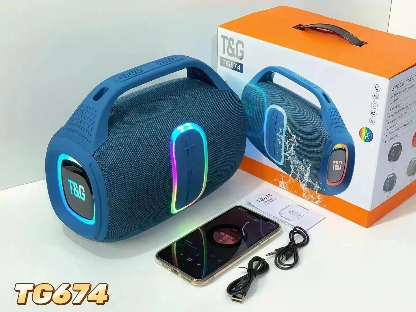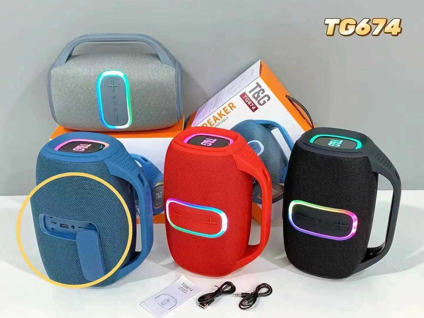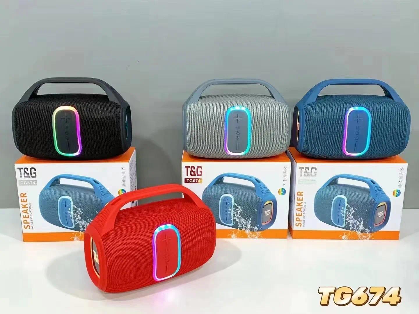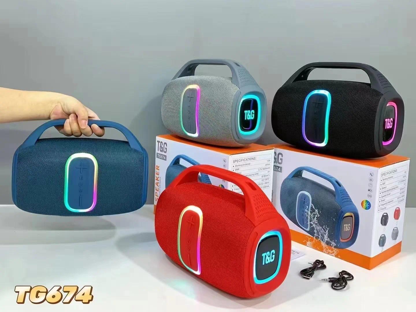 TG-674 Wireless Bluetooth High Quality Stereo Bass Waterproof BT Speaker LED RGB Light Portable Fabric Active Speaker FM Radio