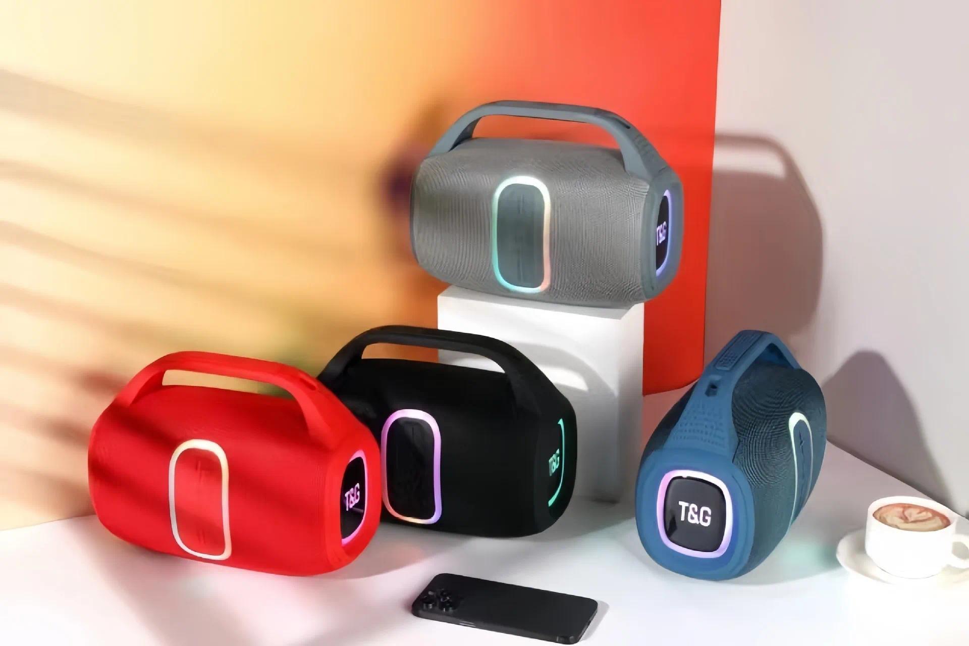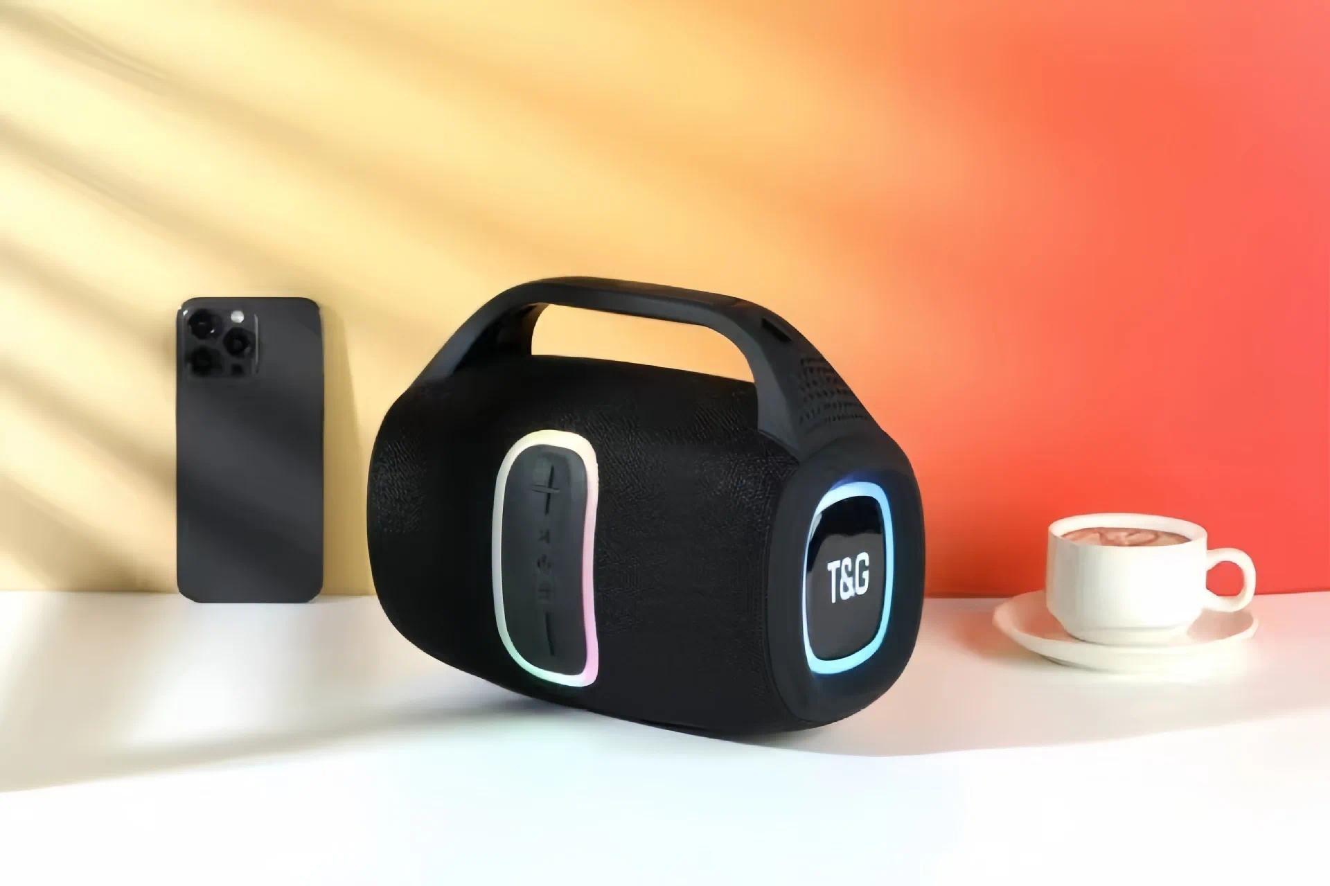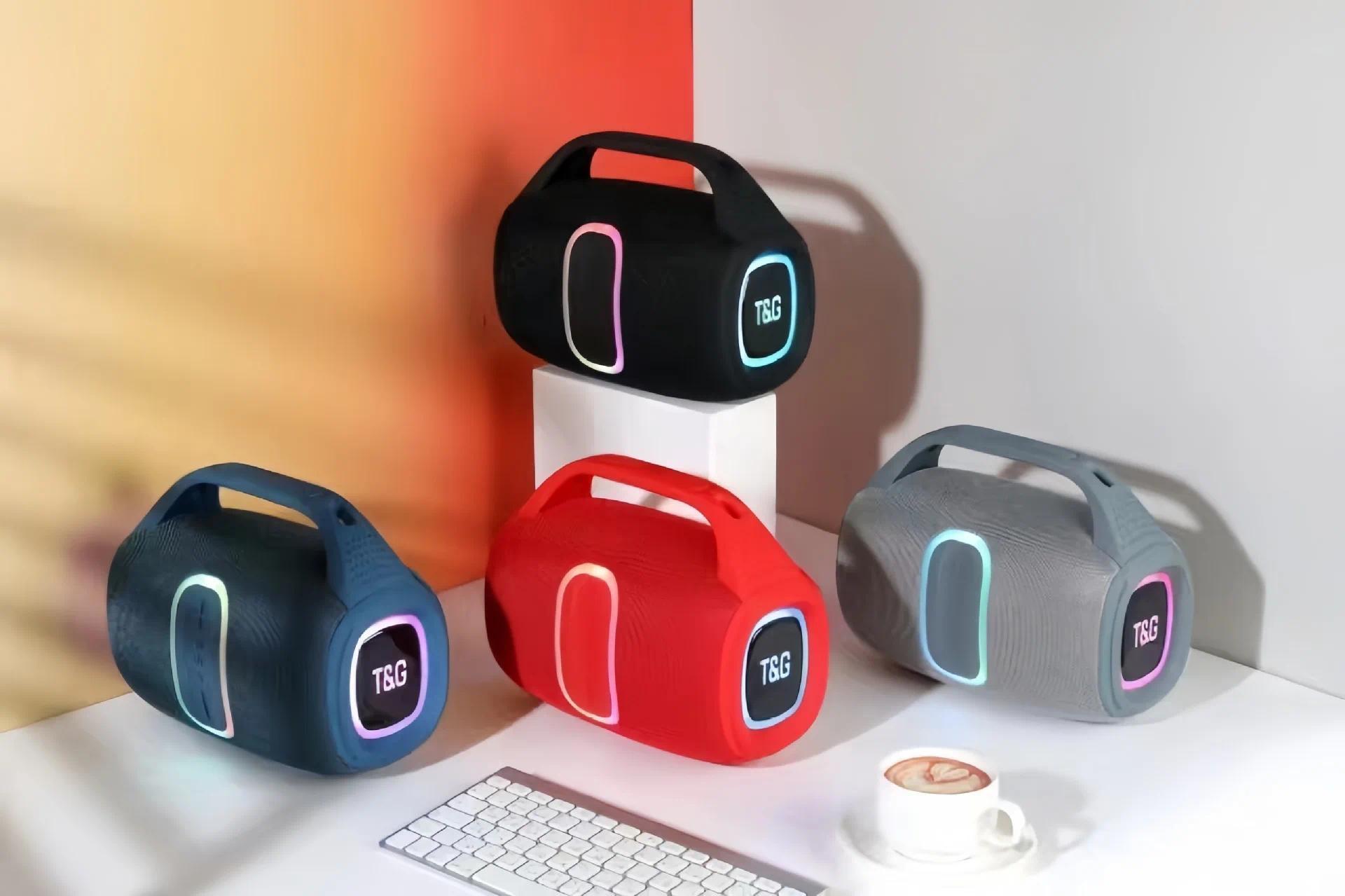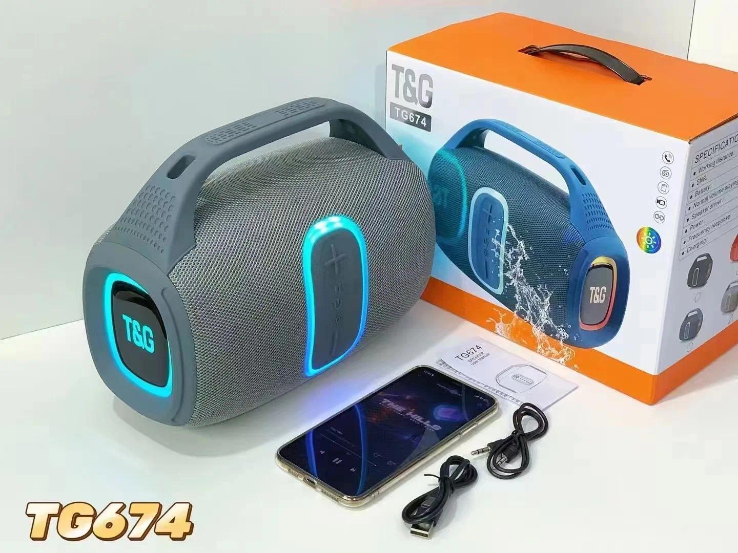 TG-674 Wireless Bluetooth High Quality Stereo Bass Waterproof BT Speaker LED RGB Light Portable Fabric Active Speaker FM Radio