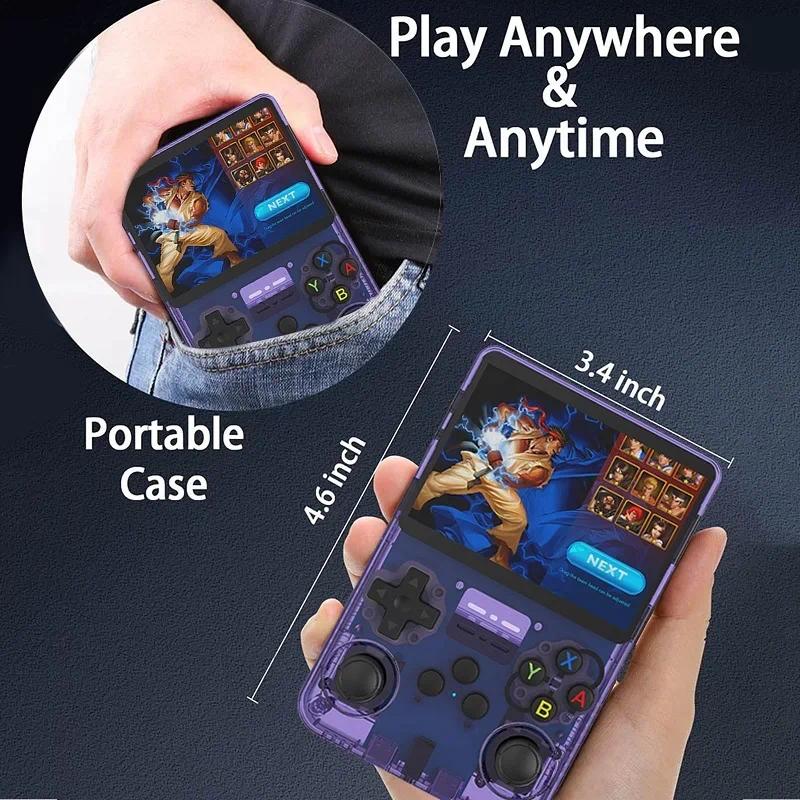 Designed for convenience, the R36S's lightweight and small form factor, along with a protective case, makes it ideal for travel and on-the-go gaming.