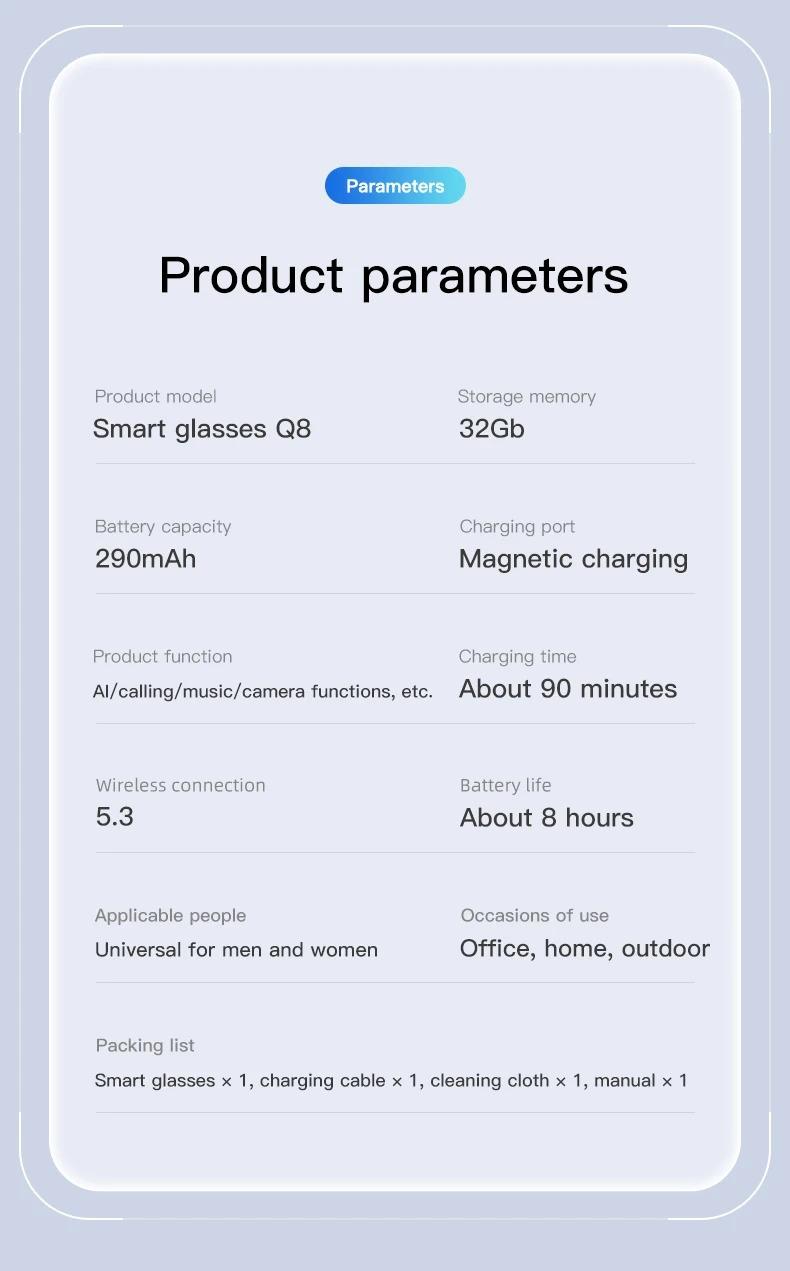 Q8 AI Smart Glasses with Real-Time Image Translation, High-Definition Color Blocking, Sunglasses for Listening to Music, Suitable for Work, Business, Travel, Sports, and Camera Use