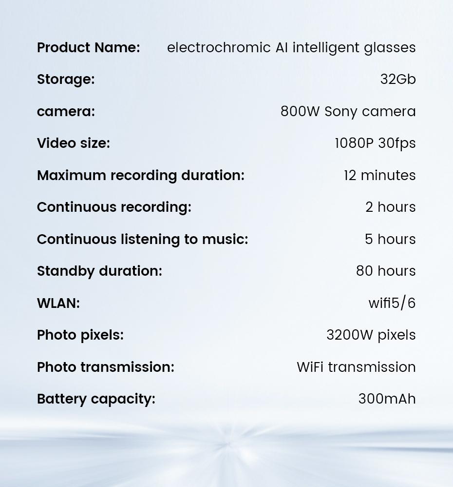AI Smart Glasses Recording: Capture life's moments with 800W pixels, 3200W pixels photos, and 1080P video on these AI smart glasses.