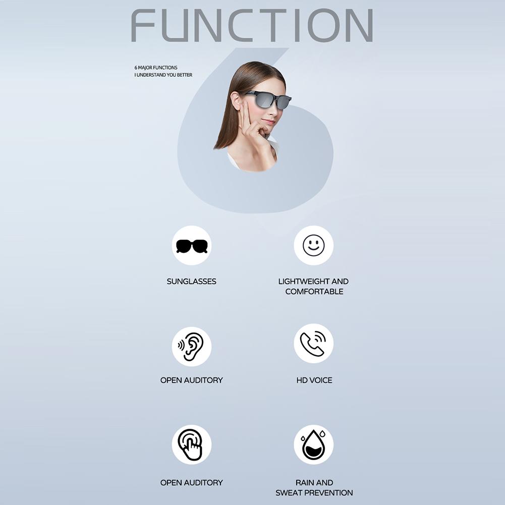 AI Intelligent Translation Glasses Bluetooth-Compatible 5.4 Wireless Sunglasses Built-in Microphone Speakers Sports Driving Sunglasses Support 144 Languages Wireless Headphones for Men and Women Feature: 1.Real-Time Translation in 144 Languages: Experience seamless communication with support for 144 languages, achieving a remarkable 99% accuracy rate. Be it for sports driving sunglasses or any other activity, exchange words with confidence across global regions. 2.Bluetooth-Compatible 5.4 Technology: Featuring bluetooth-compatible 5.4, enjoy smooth audio streaming. Smartly integrates for iPhone and for Android devices as smart glasses, ensuring fast and stable connections without interruptions. 3.High-Definition Calls: Equipped with HD microphone and speakers, these earphone glasses provide clarity in calls, enhancing your communication experience. Effortlessly manage calls and music via built-in mic and headphones without extra gadgets. 4.Blue Light Eye Protection: Incorporating blue light filtering, these wireless sunglasses reduce eye strain from prolonged device use. Designed for comfort with a lightweight frame, making them ideal for daily wear. 5.Versatile Use: for music, calls, gaming, TV, home office, or outdoor activities, these wireless headphones adapt to various scenarios. Let these multifunctional glasses be your smart life and work assistant.
