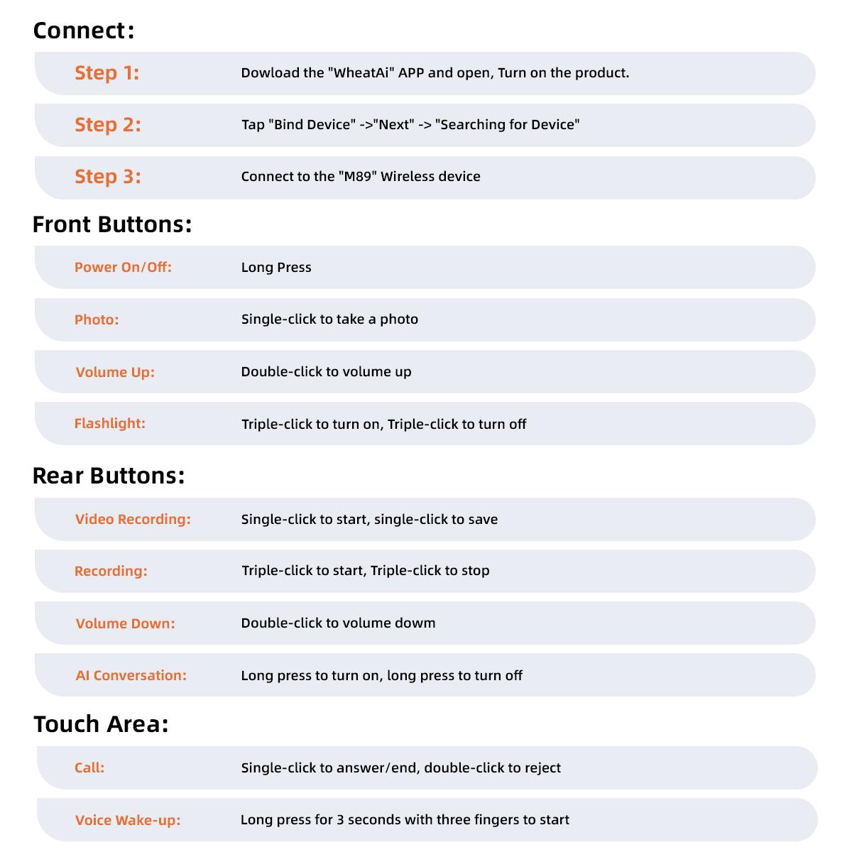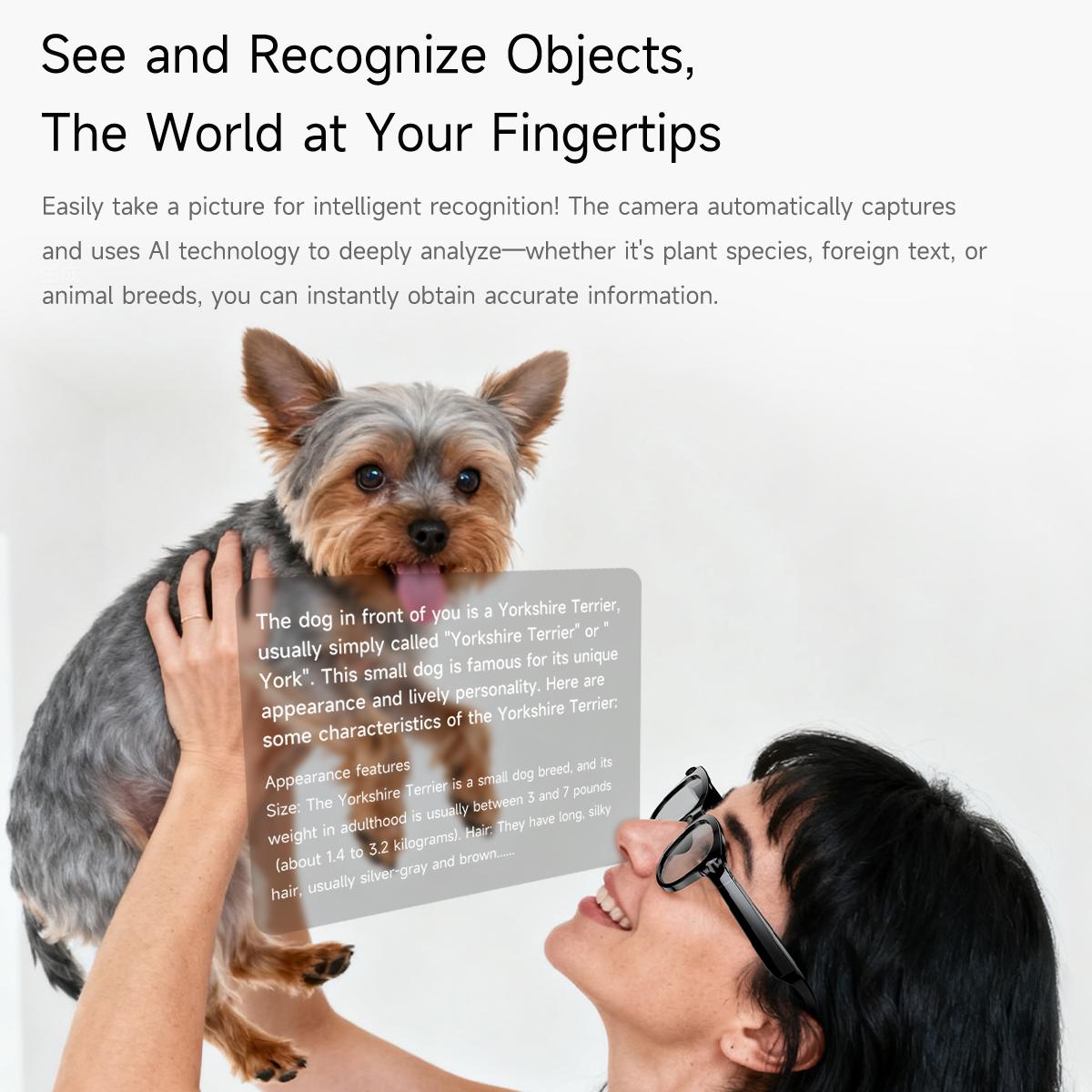 Photo/Video Capture Recording – HD with stabilization, reliable assistant for business meetings Voice Recording – Crystal-clear audio Music Control – Play/pause/skip tracks Call Functions – Bluetooth calling Alerts & LED Indicators – Smart notifications Real-time Translation – Break language barriers Smart Object Recognition – Identify anything! Touch Controls – Intuitive gestures Local Music Playback – Offline listening ️AI translation language –Chinese, English, German, Spanish, French, Italian, Japanese, Korean, Portuguese, Russian, Swedish