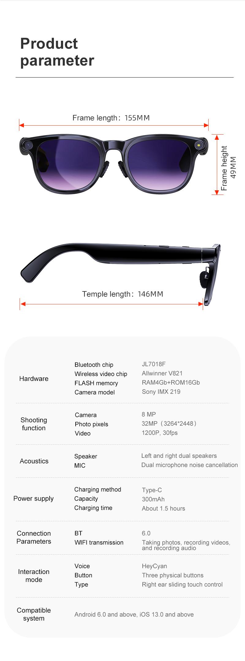 5> Other Functions: Music playback, voice recording, photography, video anti-shake, dual-mic noise cancellation, dual speakers, wear detection, Wi-Fi transfer, voice wake-up