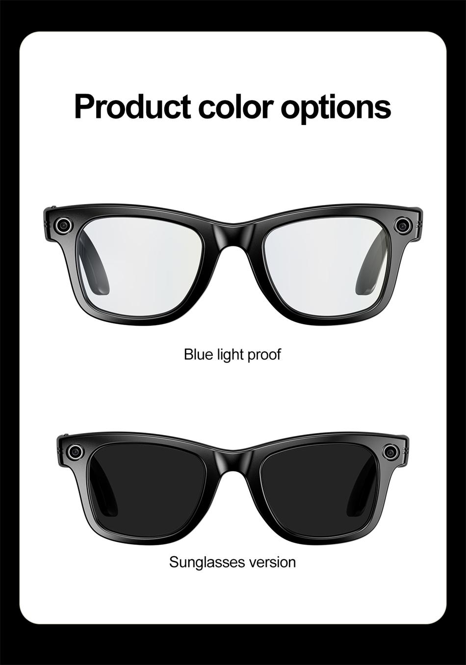 AI photo-taking and video recording fashionable smart glasses: A1 photo recognition, answering questions, taking photos, recording videos, AI dialogue interaction, Bluetooth calls, local music playback (switching, pausing music), low power consumption W20 main control chip, long-lasting battery life, dual physical buttons and dual touch buttons for convenient operation, 35g lightweight overall weight for comfortable wearing, customizable sunglasses, blue light protection, myopia, and other lenses, 260mAh large battery, IP65 dust and water resistance, ultra-low power consumption (supports continuous recording for over 2 hours without heating). Integrated with ChatGPT's advanced model, high accuracy in image recognition.