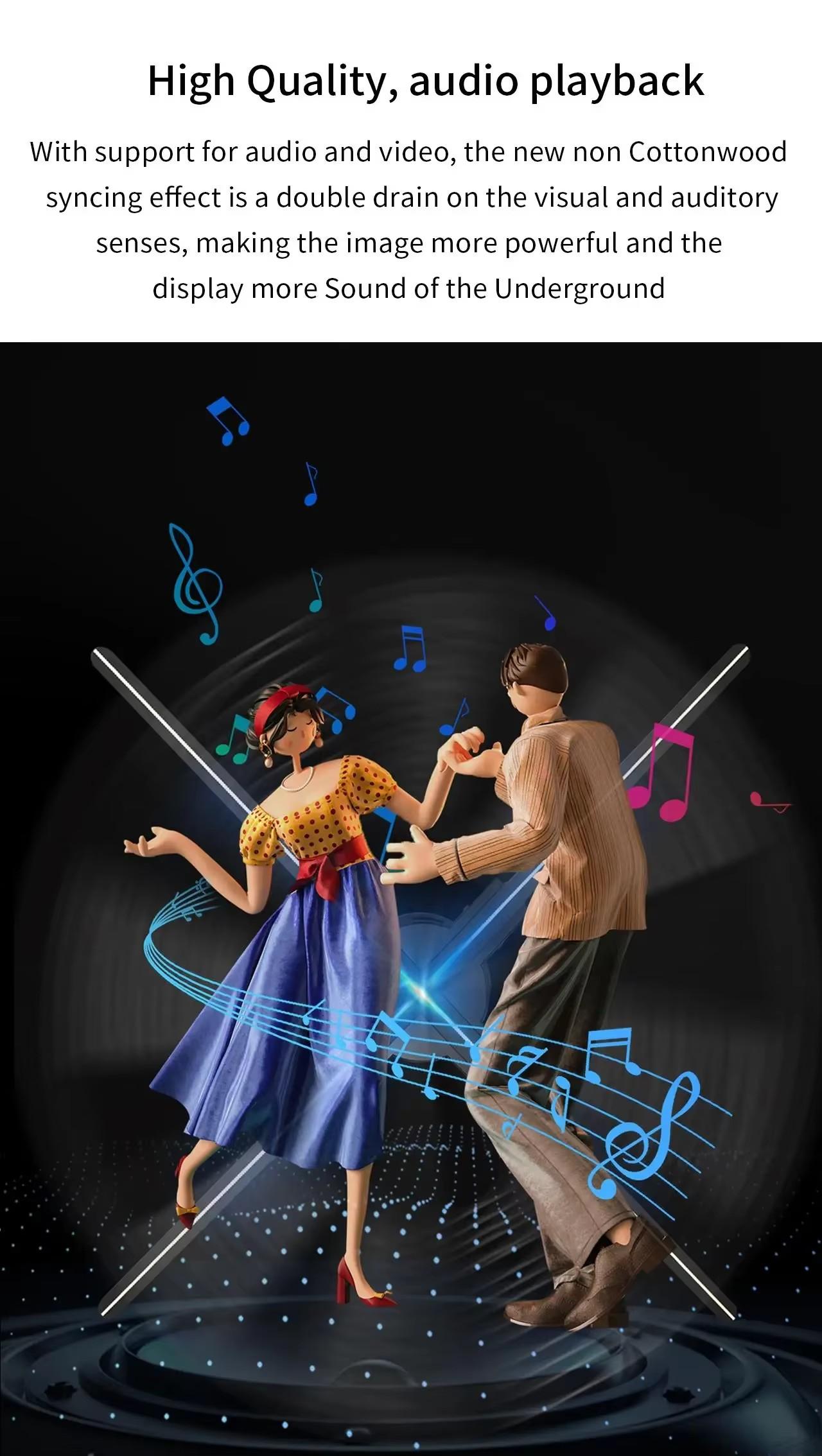Power input voltage: 100-240V/AC 50/60Hz Power output voltage: 24V/3A TF memory card: 8G Bluetooth audio √ Multiple splicing √ Video/picture format MP4/AVI/GIF/JPG/PNG Software Support System Mobile APP/Computer Wireless projection √ Brightness adjustment √ Angle adjustment √ Shelf life one year Product Features Diverse custom production content, Android real-time screen projection function