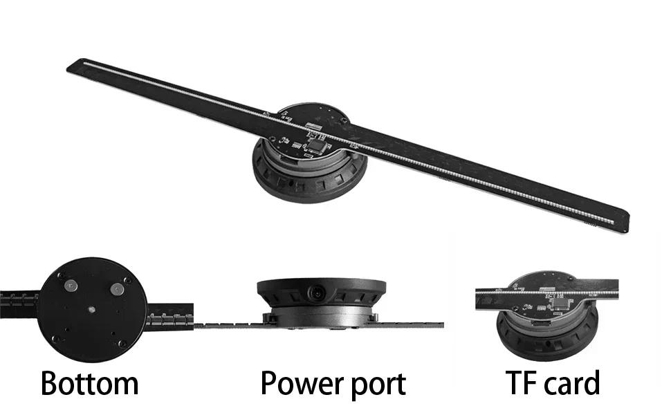 High-definition video, easily changeable, plays videos in seconds. Three-dimensional holographic advertising machine – This is a combination of fan rotation and LED light strip display, using human eye persistence to create animated images and virtual videos. When shooting, all LED lights emit light, while the surrounding case remains dark and does not emit light. This ensures that when using the three-dimensional holographic advertising machine, the eyes only receive bright light, with no dark areas or glare. The display unit processes the visual effects from the flight through the LED display to achieve a true three-dimensional effect. Then, the image hovers in three dimensions, taking advantage of the human visual system’s recognition capabilities (Pov technology). Through densely arranged LED columns, the image details are rotated, creating a glass-like transparent effect. When the lighting is turned off, the image will remain visible due to the persistent nature of the retina. Seamless content management via WiFi and app.
