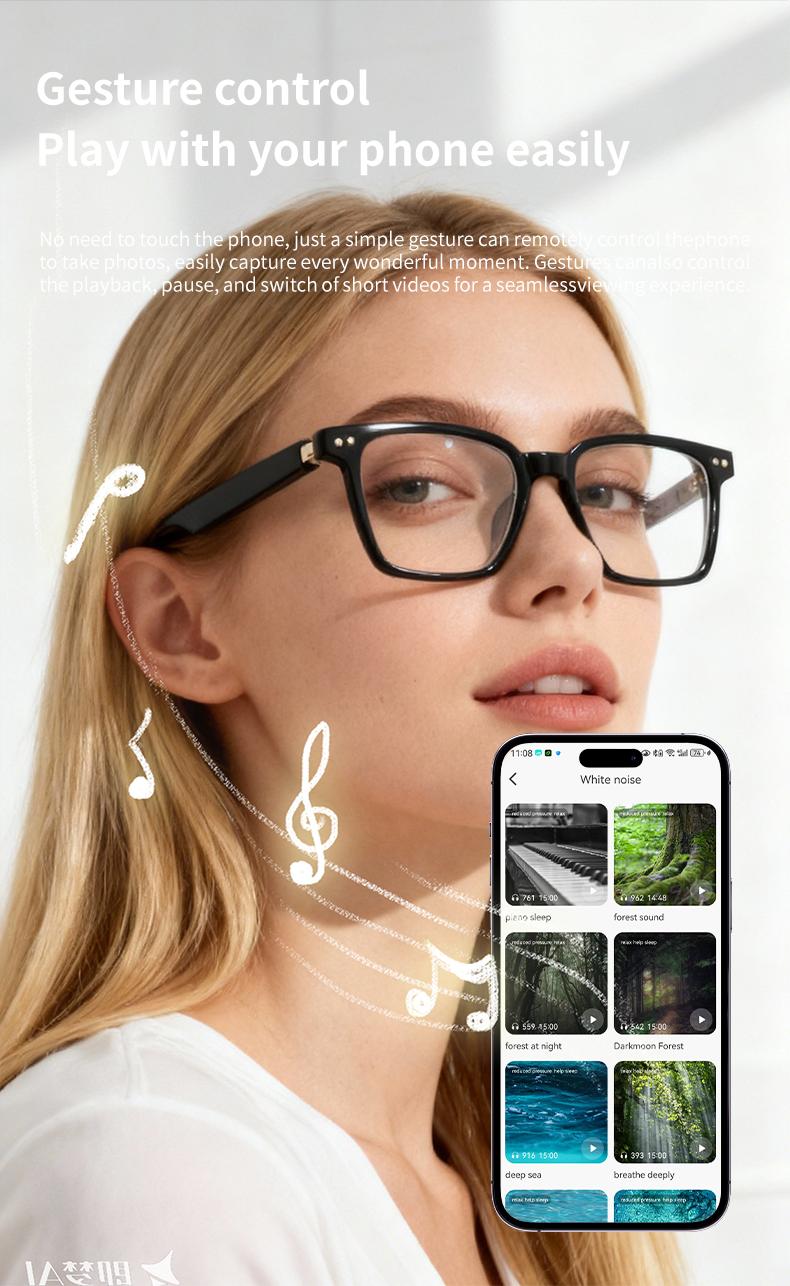 Smart Bluetooth 5.0 AI Glasses with App Control Wireless Music Sunglasses for Calls, Translation, Sport Mode & AI Eyewear