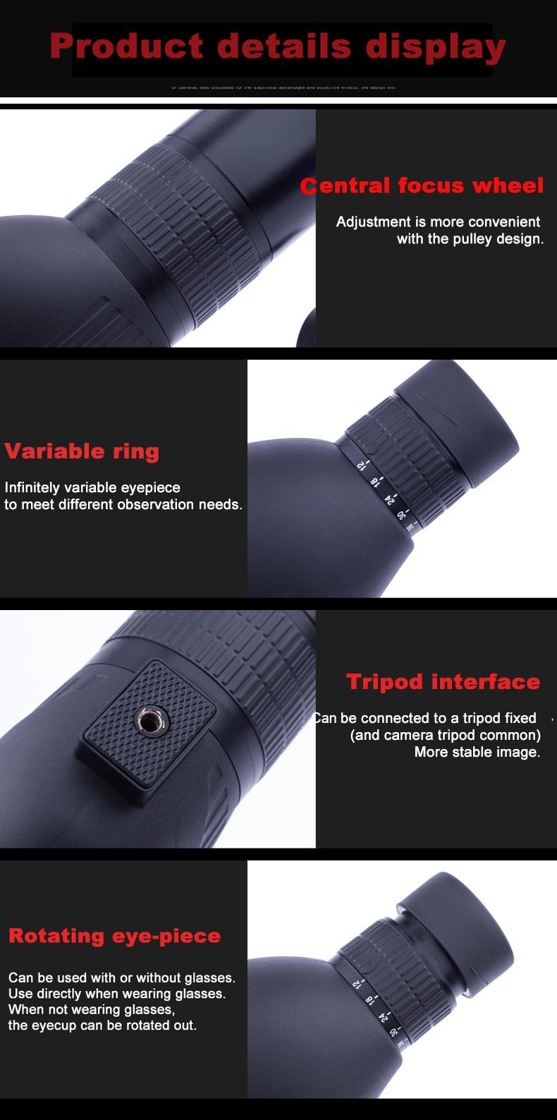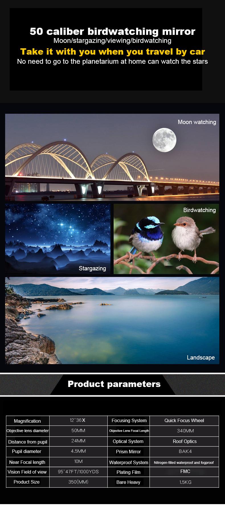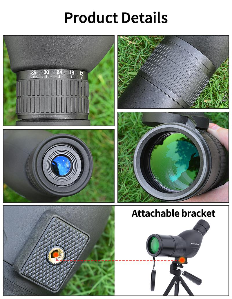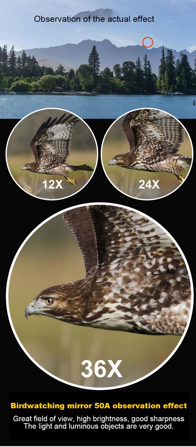 12-36X50 Spotting Scope HD Zoom Monocular Powerful Telescope Bak4 Prism Waterproof Anti-Fog for Outdoor Camping Bird Watching
