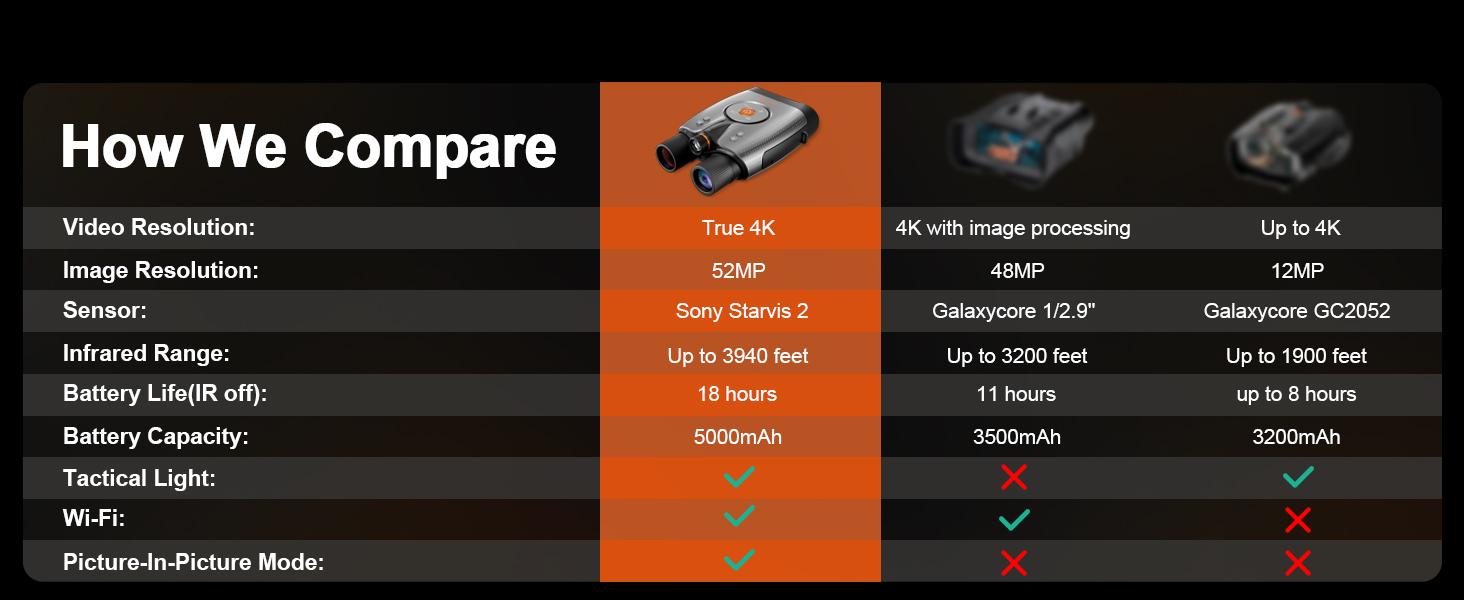 【True 4K Video with STARVIS 2 Sensor】Capture every detail in true 4K using the military-grade STARVIS 2 sensor. 52MP images deliver bright, clear visuals ideal for long-range viewing, nighttime surveillance, or outdoor adventures
