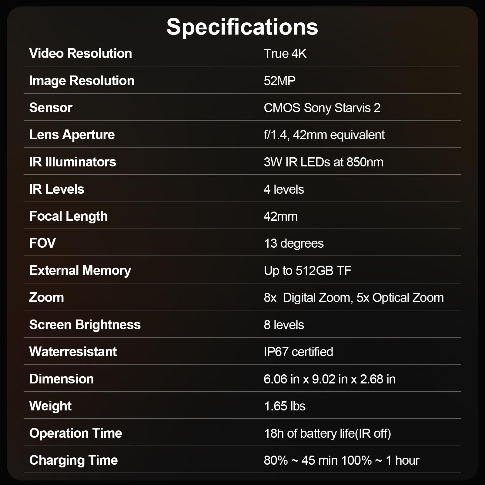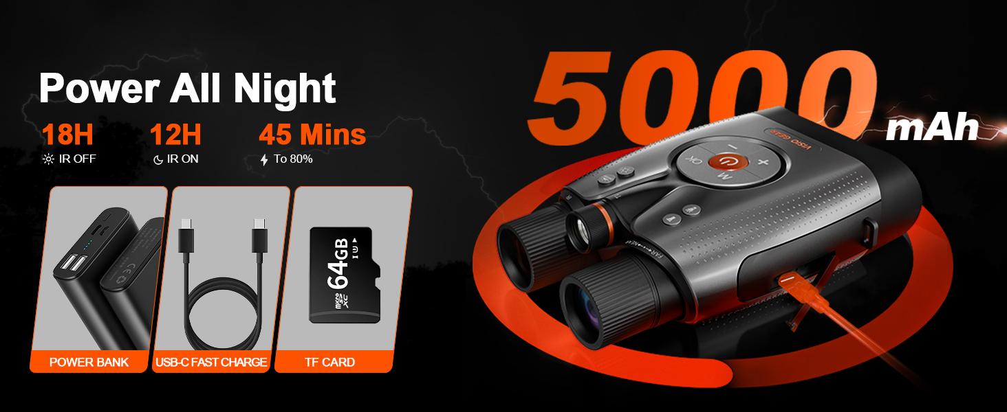 【What's Included】The DS371 comes with a premium protective case. Includes 1 x DS371 night vision binoculars, 1 x 64GB SD card, 1 x neck strap, 1 x USB-C cable, 1 x lens cap, and user manual (Chinese language support not guaranteed)—everything you need for nighttime exploration. The DS371 empowers you to seize every adventure after dark.