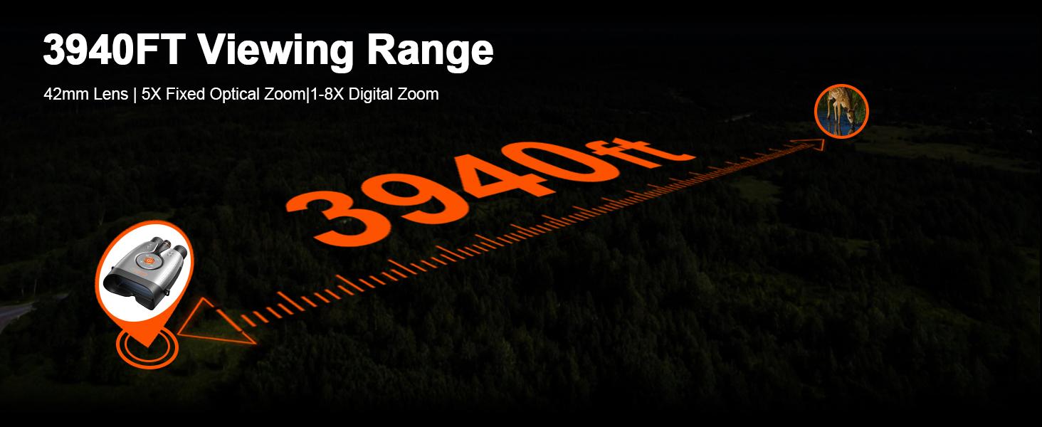 【3,940-Foot Field of View】The DS371 night vision binoculars deliver an extraordinary 3,940-foot range. Featuring 8x zoom, 42mm lenses, and a 13° field of view, these precision optics provide unmatched clarity for distant targets.